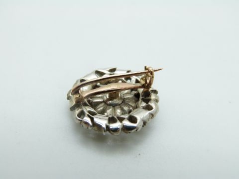 A Victorian silver and gold brooch set with old and rose cut diamonds, the largest approximately 0.5ct
