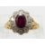An 18ct gold ring set with an oval cut ruby of approximately 1ct surrounded by round cut diamonds, each approximately 0.04, size L