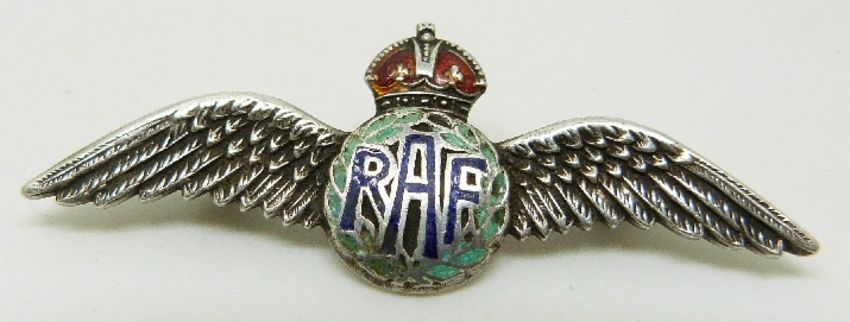 A silver RAF sweetheart brooch with red and blue enamel decoration, L5.5cm