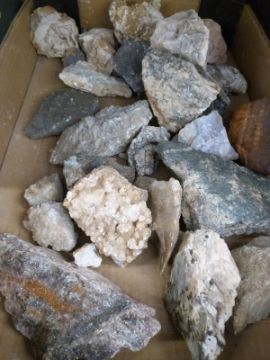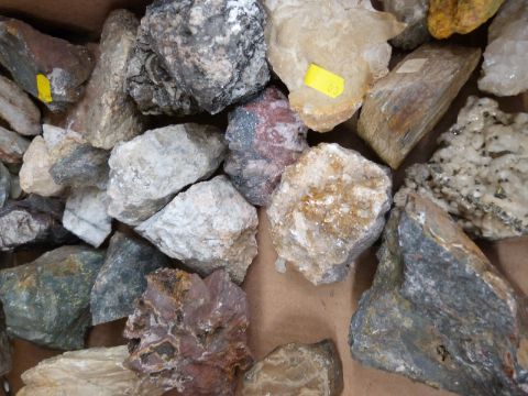 A quantity of quartz samples including slate, quartz, calcite and orpiment