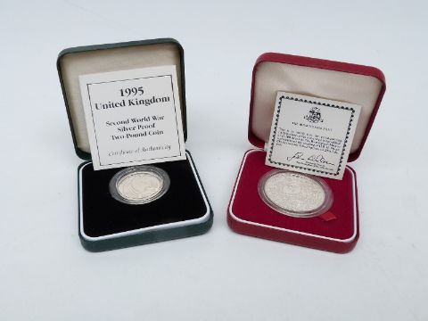 Royal Mint 1995 WWII silver proof £2 coin and a sterling silver Royal Wedding commemorative medal with certificates