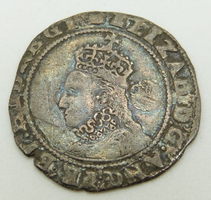 Elizabeth I rose sixpence, III issue, 1595, Fine with good portrait, some graffiti to background