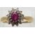 A 9ct gold ring set with an oval ruby surrounded by diamonds, size Q