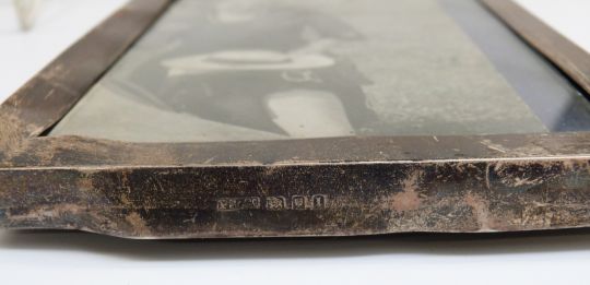 George V hallmarked silver photograph frame, to suit 6 x 4 inch photograph, London 1926, maker PS & Co with easel back