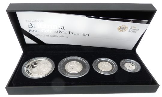 Royal Mint four coin silver proof 2008 Britannia set cased with certificate