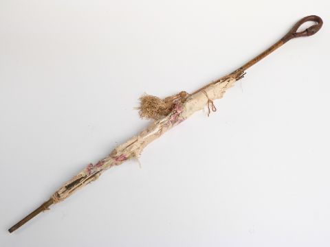 Late 19thC parasol with carved looped handle in the form of a swan's head and neck, 93cm