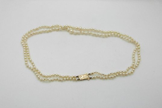 A classic strand of pearls with 9ct gold clasp.