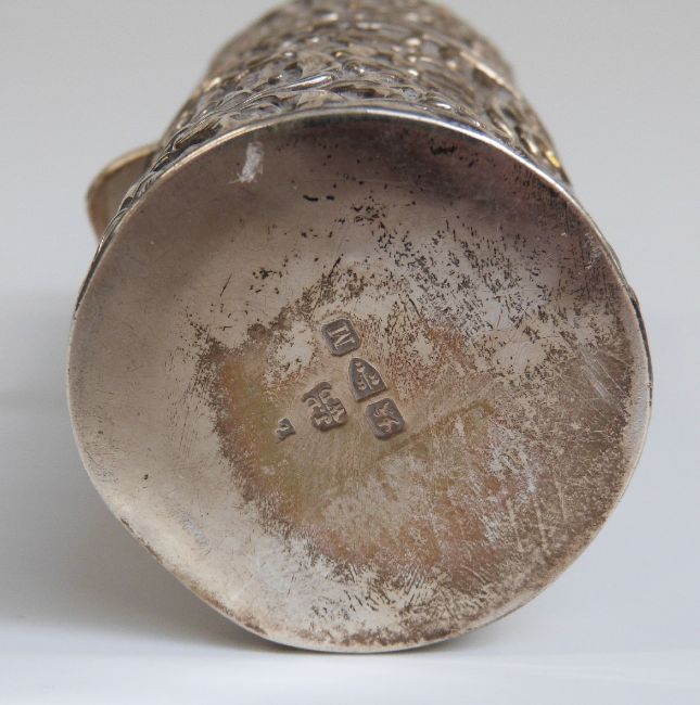 Victorian hallmarked silver embossed bottle case, Chester 1895 maker James Deakin & Sons, height 8.5cm, weight 61g