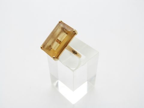 An 18ct gold ring set with a large emerald cut citrine, size P/Q