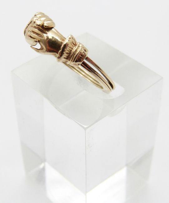 A 9ct gold Fede Gimmel ring, size R, 3.87g