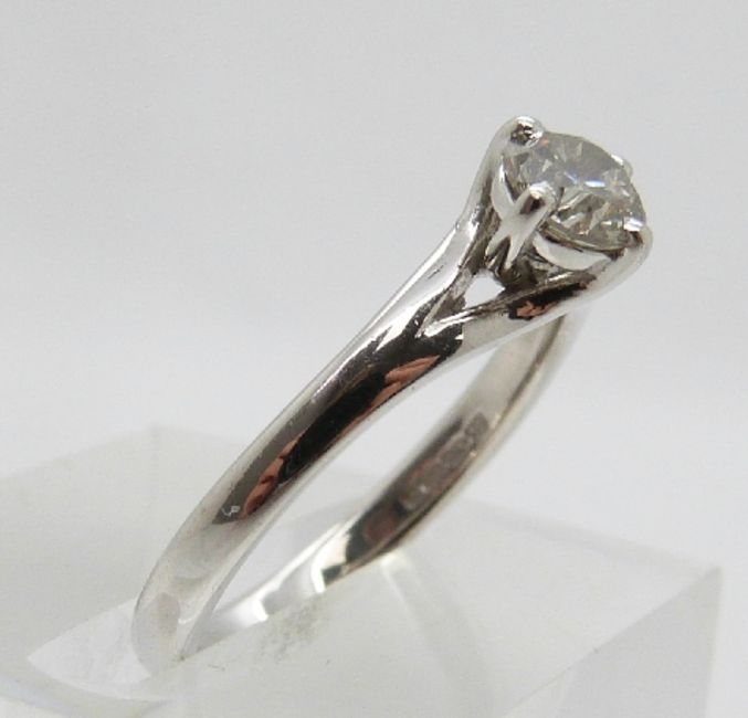An 18ct white gold ring set with a round brilliant cut diamond solitaire of approximately 0.57ct, with AnchorCert certificate, size L