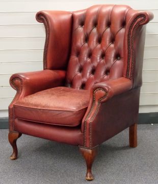 Leather wing-backed armchair