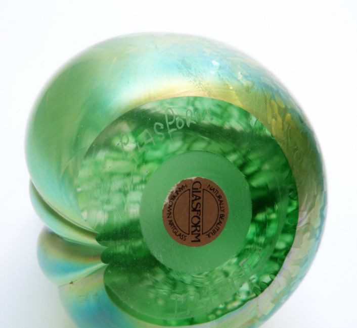 John Ditchfield for Glasform iridescent glass paperweight in the form of a frog, signed and label to base, 11cm tall