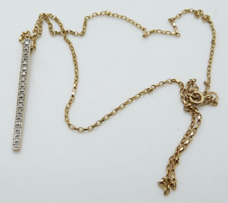 A 9ct gold pendant set with diamonds on a 9ct gold chain