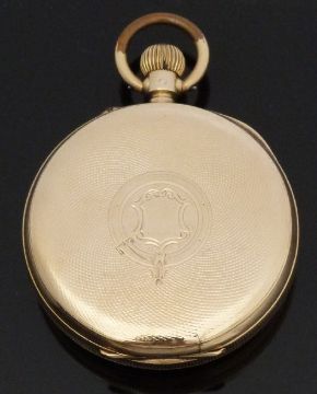 Baume Longines 9ct gold open faced keyless winding pocket watch with Roman numerals, inset subsidiary seconds dial, blued hands and signed and engraved movement, case diameter 46.3mm, serial number 1375792, 70.8g.