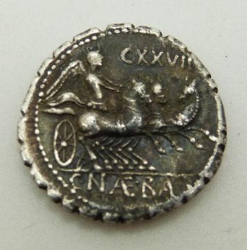 Roman silver Denarius Carausius (287-293) Obverse; empress with braided hair in beaded circle with SC to side, reverse CNAERA in chariot CXVII above