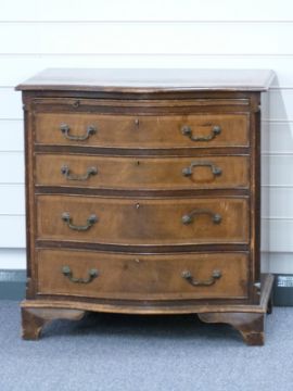 A serpentine fronted chest of four graduated drawers with brush slide W68 x D45 x H75cm
