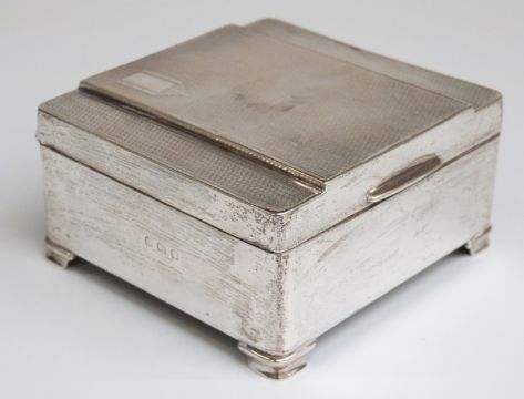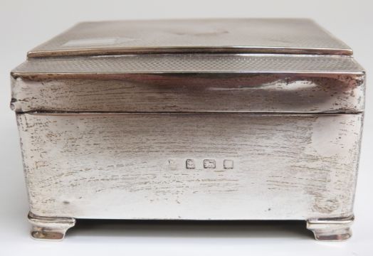 Art Deco hallmarked silver cigarette box, marks rubbed, width 9cm