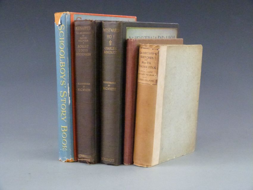 Beatrix Potter The Tale of Peter Rabbit illustrated 1907 colour illustrated boards, Kidnapped by Robert Louis Stevenson 1913 colour plates, Caldecott's Sketches a special hand-coloured copy limited, Schoolboy's Story book glazed illustrated boards and dustwrapper (5)