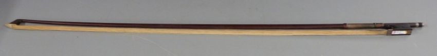 Jules Heinrich Zimmerman silver mounted round stick, violin bow the ebony frog with mother of pearl eye and inlay