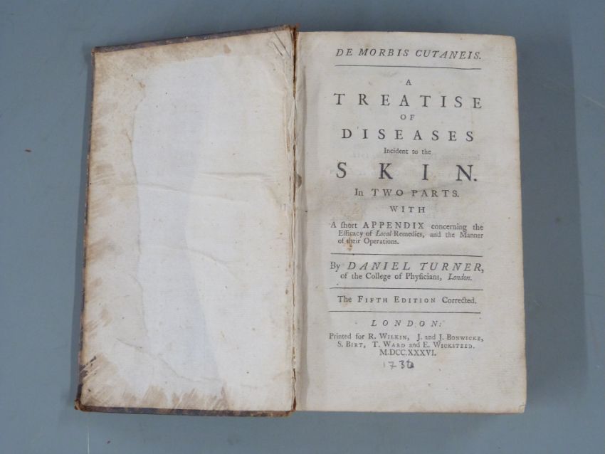 A Treatise of Diseases Incident to the Skin in Two Parts with a short Appendix by Daniel Turner of the College of Physicians, London printed for R. Wilkin, J. and J. Bonwicke etc 1736 fifth edition corrected bound in one volume, full leather raised bands hand lettered label, The Book of Household Management by Mrs. Isabella Beeton, revised & corrected with coloured engravings (2)