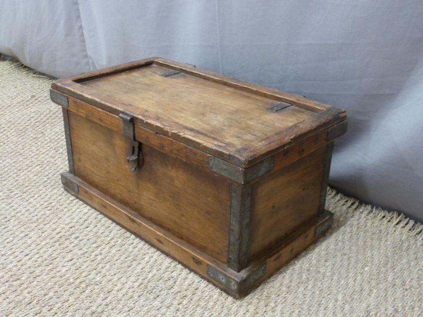 A metal bound trunk/ storage box, L58 x D34 x H30cm