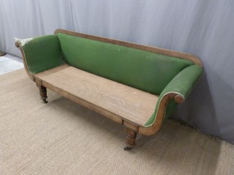 Regency sofa with scroll ends raised on turned legs with castors, length 205cm