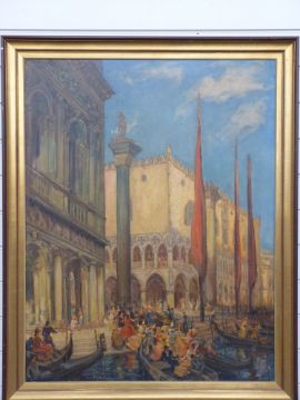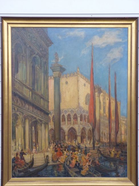 After F W Brangwyn Venetian scene, indistinctly signed lower left, 89 x 69cm