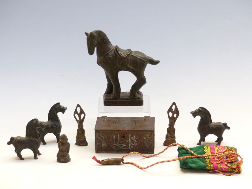Quantity of Middle Eastern items including Cairo Ware box, Buddhas and Chinese bronze horses