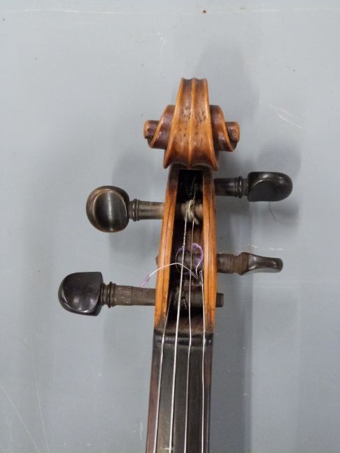 Early 19thC full size violin with 36cm one piece back, faux grafted neck, paper pencilled label John Betts No 11 Near Northgate, The Royal Exchange, London 1801