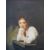 Oil on canvas lady leaning on a desk or counter, indistinctly signed or titled lower right 114 x 87cm