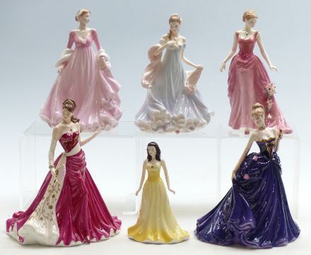 Royal Doulton, Royal Worcester and Coalport figurines including limited edition Lady Caroline at the Opera, Ruby, Perfect Moment, Mia, With All My Heart etc