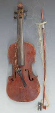Anonymous mid twentieth century full size violin, 36cm two piece back, with carry case and bow