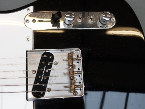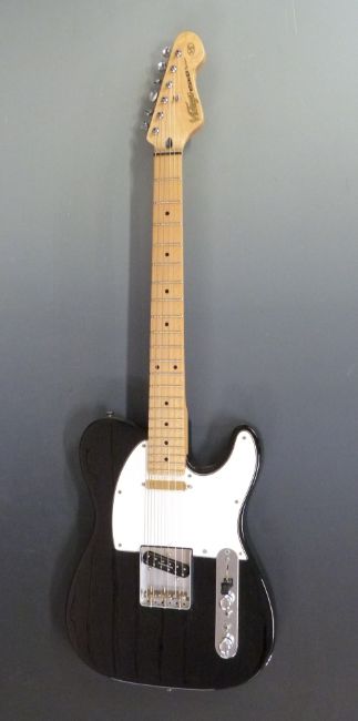 Vintage brand reissued Series V2 electric guitar in black gloss finish with white finger board, fitted with a 'little 59' Seymour Duncan, TRT2 hot pickup, with soft carry case