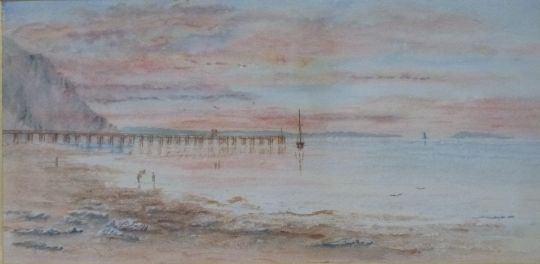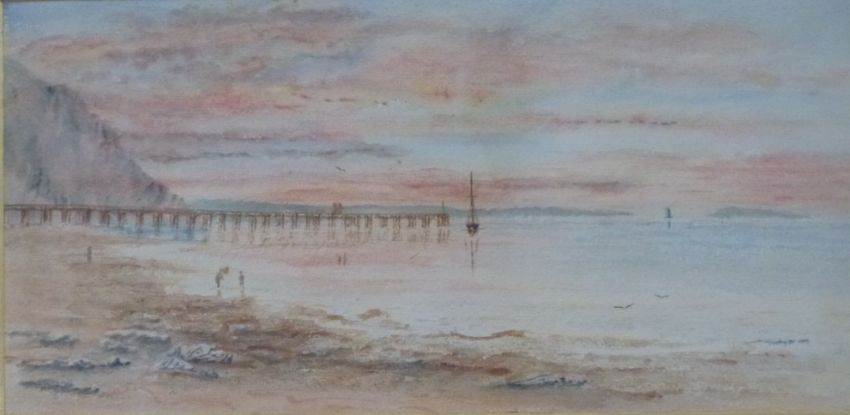 Victorian/Edwardian watercolour Penmaenmawr Pier, 15 x 31cm
