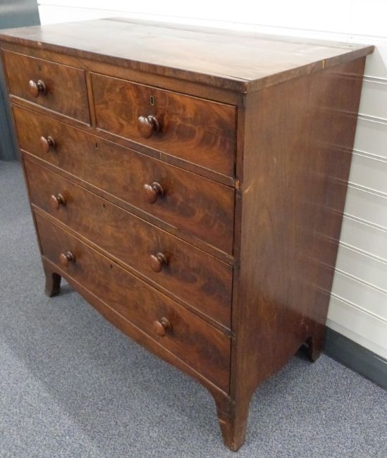 Victorian flame mahogany chest of two over three drawers, W105 x D52 x H106cm