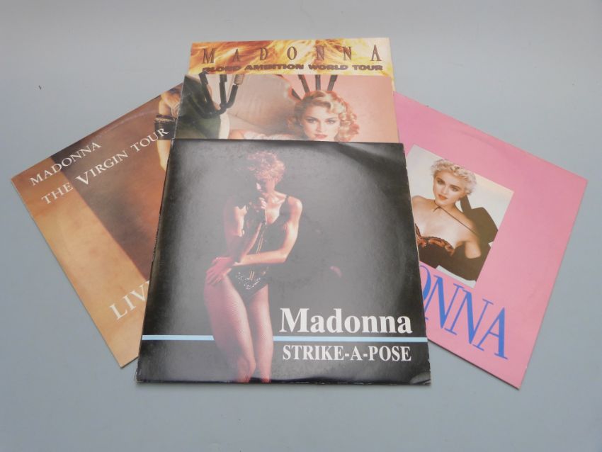 Madonna - Blond Ambition World Tour (Skald), Surprise (L2L035), The Virgin Tour Live (FF086) and Strike-A-Pose (UNI1001) and Who's That Girl (MR441L), all appear excellent condition, slight wear to covers