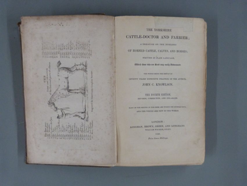 The Yorkshire Cattle-Doctor And Farrier; A Treatise on The Diseases of Horned Cattle, Calves And Horses by John C. Knowlson 1846 Revised, Corrected & Enlarged in embossed & gilt decorated cloth with four volumes of the Live Stock Handbooks; Pigs, Cattle, Light Horses and Sheep, Illustrated 1894-1897 original cloth with gilt lettering (5)