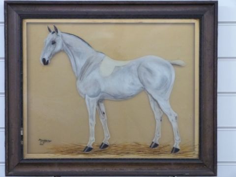 T B Whitely reverse painted on glass study of horse, signed and dated 1921 lower left, 39 x 49cm