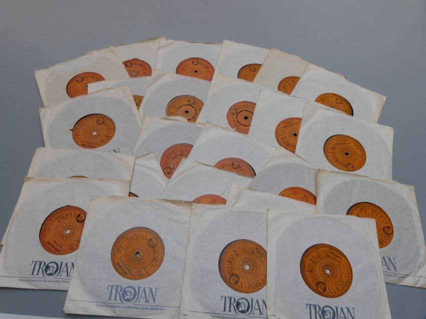 Twenty-five 45s on Trojan (TR7915, 7929, 7935, 7937, 7938, 7953, 7955, 7958, 7961, 7964, 7970, 7971, 7975, 7980, 7984, 7984, 7987, 7988, 9001, 9008, 9017, 9018, 9020, 9028 x2 and 9030) records appear unplayed