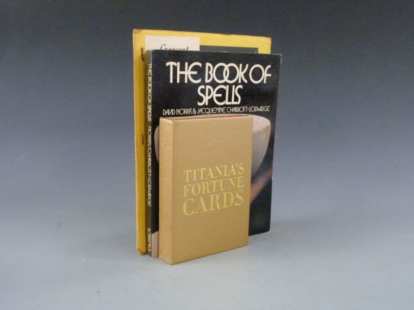 The Book of Spells with signed letters from the author, cased set of Titania's Fortune Cards with an illustrated deck of cards and full colour illustrated instruction manual, and copy of the Crescent magazine volume 1 from 1960 (3)