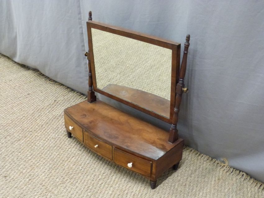 19thC three drawer mahogany dressing table mirror, width 58cm and another smaller example