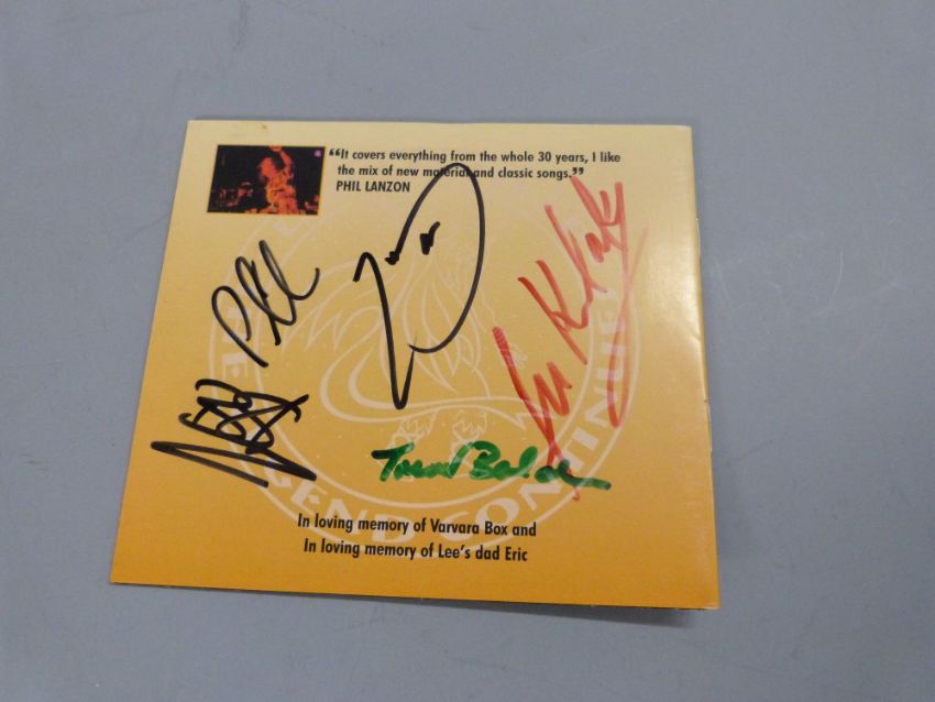 Approximately 50 rock CDs many collectable, mostly double digipacks including Led Zeppelin, Pink Floyd, Sacred Reich, Motorhead and Saxon plus others, also 14 CD and/or DVD box set including Uriah Heep signed limited edition, Lynrd Skynrd, Motorhead, Saxon, Queensryche, Aerosmith, UFO and Michael Schenker Group plus others, The Hitch-Hikers Guide To The Galaxy cassette box, Black Sabbath CD collection book, box and metal badge