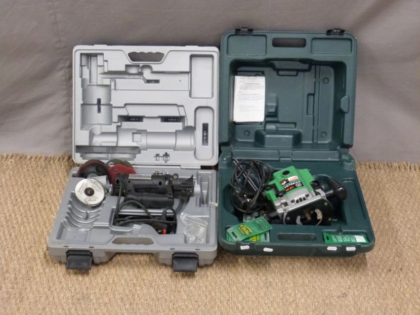 Hitachi M8V ¼ inch router in case and a Rotozip tool in case