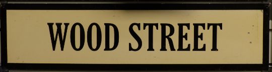 Vintage metal street sign Wood Street, 19.5cm x 78cm