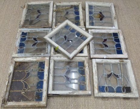 Ten 19th / early 20thC leaded glass windows, larger examples 53 x 41cm