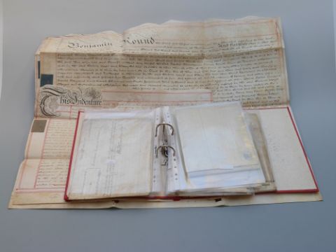 Twelve 18thC documents relating to leases, earliest 1747, together with a mortgage dated 1888 from the Second East Central Martin Mutual Benefit Building Society
