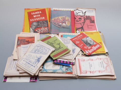 A large quantity of theatre programmes including runs of Theatre Royal Bath c1950's, Kings Theatre Glasgow, Royal Lyceum Theatre Edinburgh, Theatre Royal Bristol c1950's, many London theatres including vaudeville, Theatre Royal, Marlowe Theatre Canterbury etc