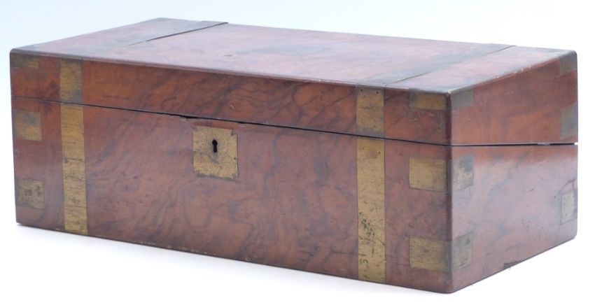 A 19thC brass bound walnut writing slope