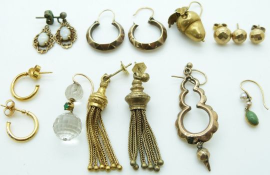 A collection of earrings including Victorian examples